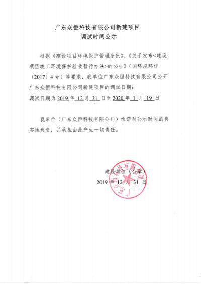 上一篇 : 广东众恒科技有限公司新建项目竣工日期公示