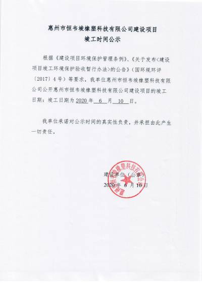 上一篇 : 惠州市恒韦竣橡塑科技有限公司建设项目竣工环境保护验收报告公示